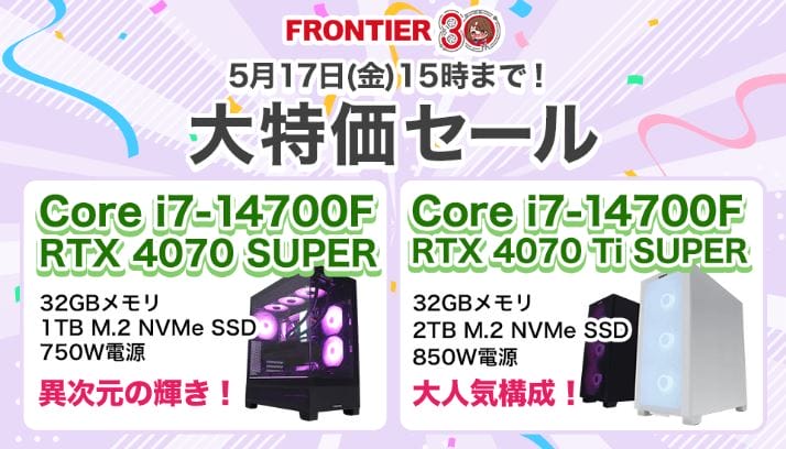 RTX 4090搭載ゲーミングPCが大特価!フロンティア『春のパソコン祭』開催