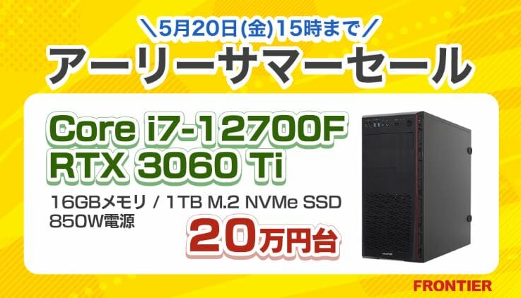 12世代Core i7+RTX3060Ti搭載モデルが税込20万円台!フロンティア『アーリーサマーセール』開催
