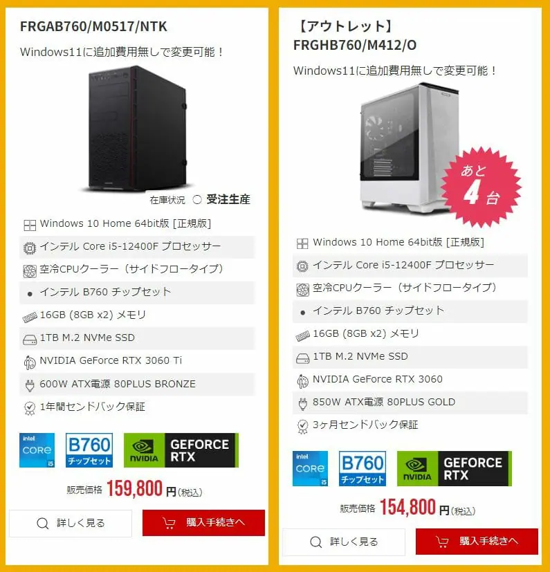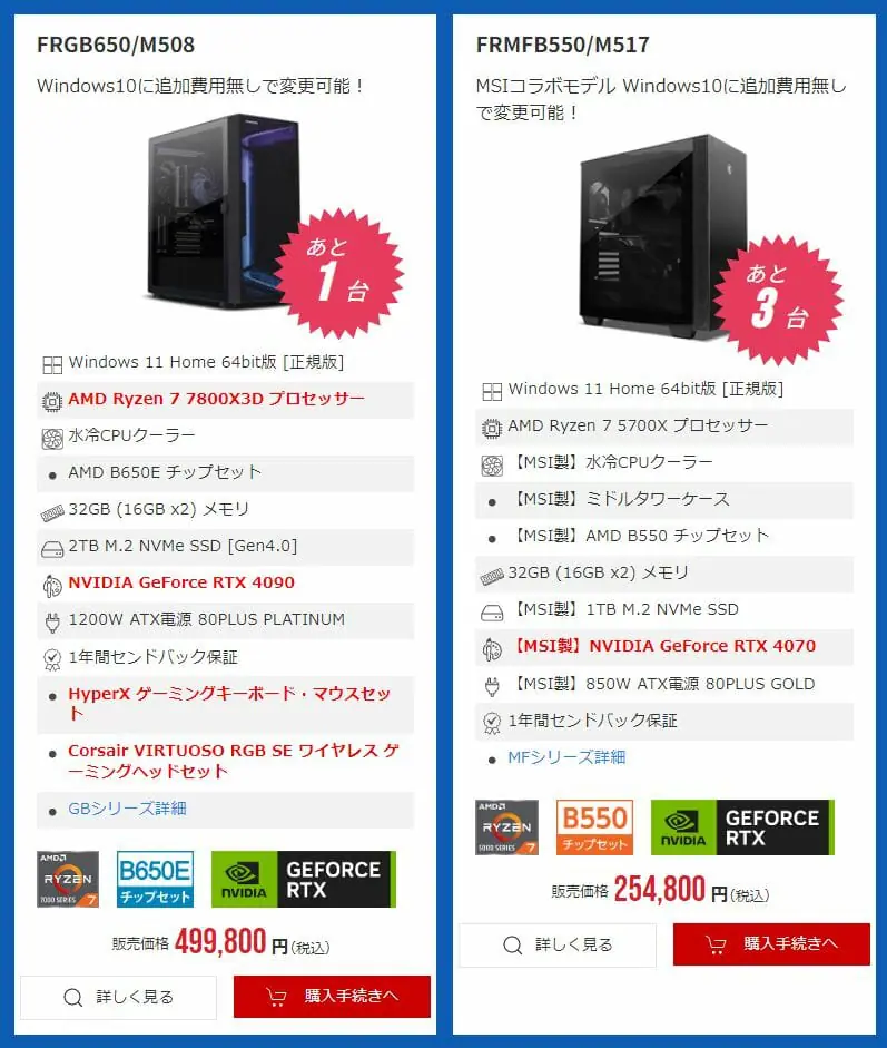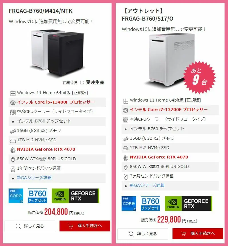 ▼『RTX4070』搭載モデルもお得な価格で販売されています。