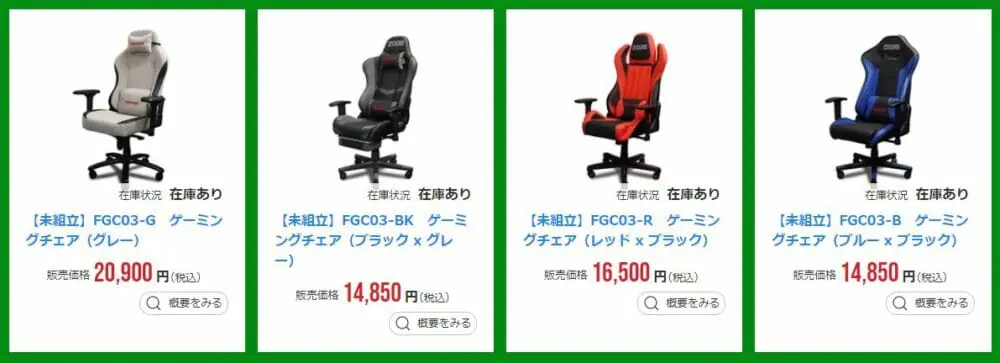 ▼また、ゲーミングチェアもお得な価格で用意されています。