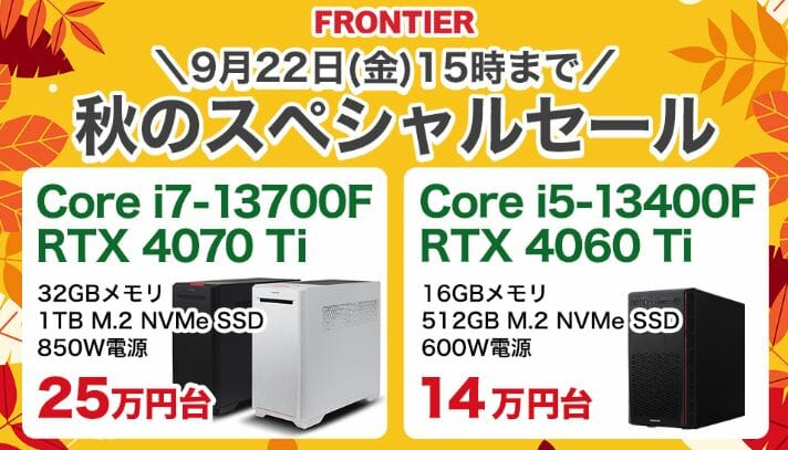 ハイエンドゲーミングPCが大特価!フロンティア『パソコン秋穫祭』セール開催