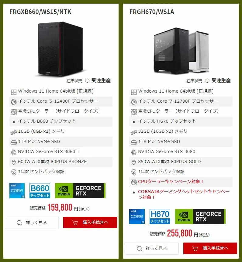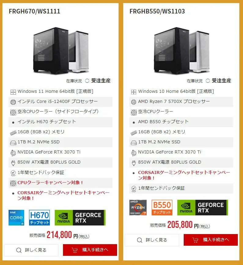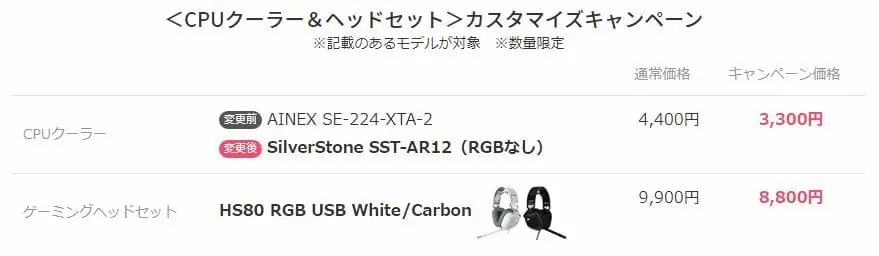 また、一部のモデルはCPUクーラーをお得にカスタマイズできるキャンペーンの対象となっています。