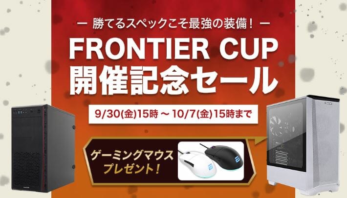 今回実施される『FRONTIERCUP開催記念セール』では、ハイエンド級からミドル級まで、非常に幅広い価格帯のゲーミングPCがセール対象となっています。
