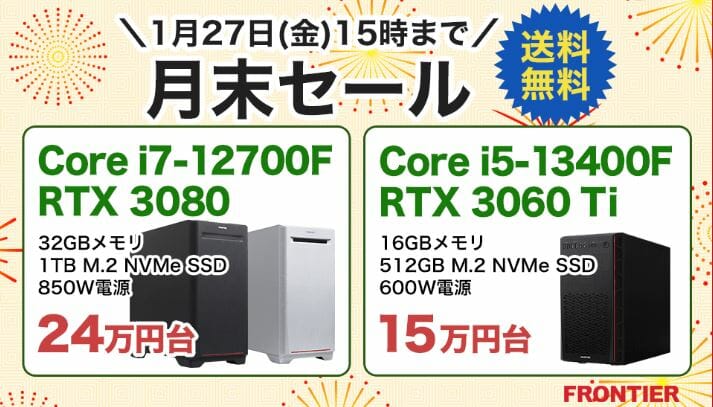 ハイエンドゲーミングPCが大特価!フロンティア『冬のパソコン祭り』セール開催