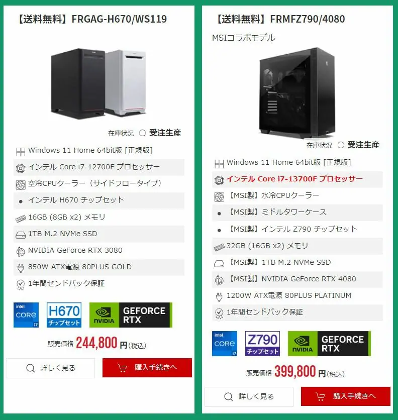 ▼インテル第13世代CPU搭載PCが特価で販売!最上級グラボのRTX4080搭載モデルも用意されています。