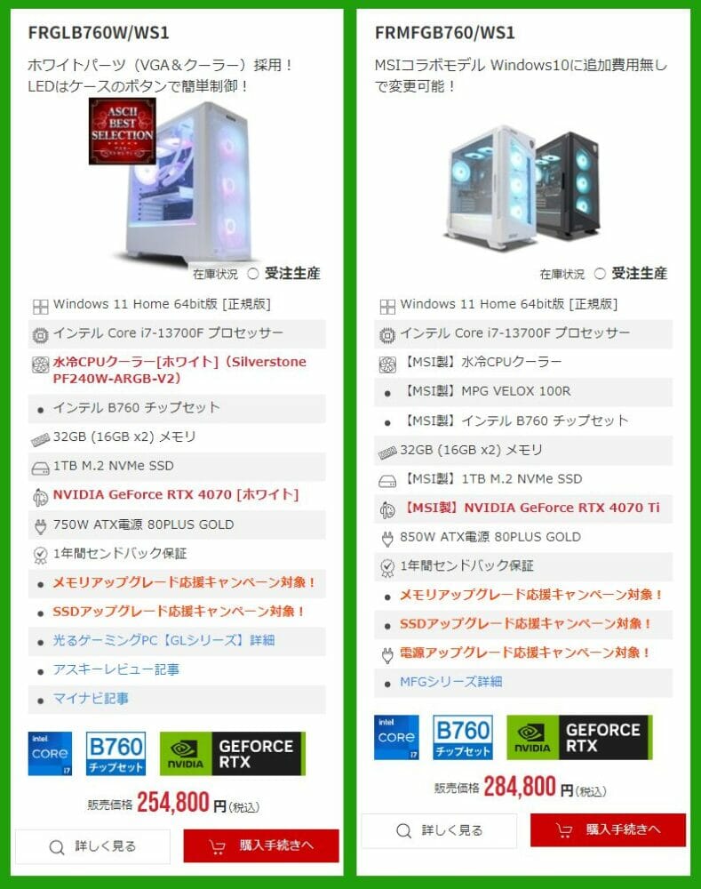 ▼RTX4070+第13世代Core i7搭載のアスキーベストセレクションモデルが、税込25万円台の大特価に。