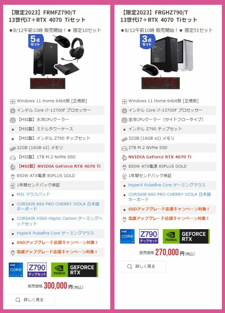 オススメ②:【限定2023】FRMFZ790/T13世代i7+RTX4070Tiセット