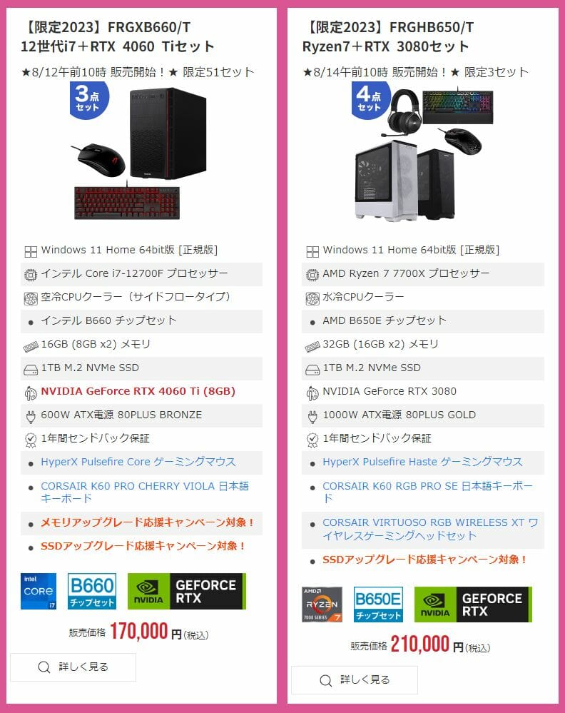 オススメ③:【限定2023】FRGXB660/T12世代i7+RTX4060Tiセット