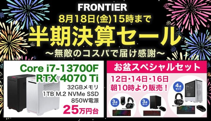 ハイエンドゲーミングPCが大特価!フロンティア『夏得市』セール開催