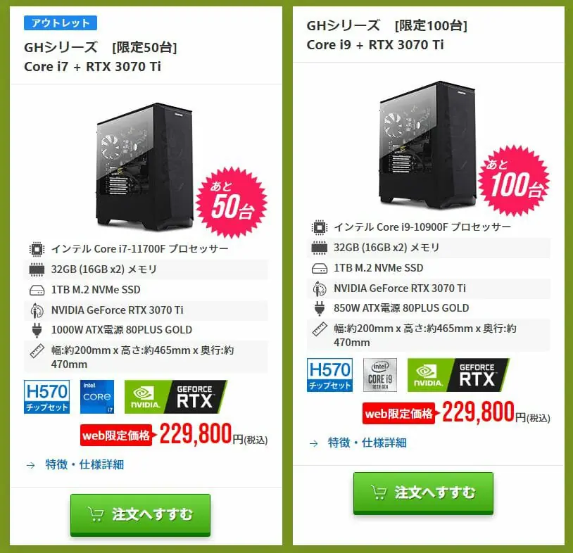 オススメ②:GHシリーズ [限定20台] Core i7 + RTX 3080(12GB)