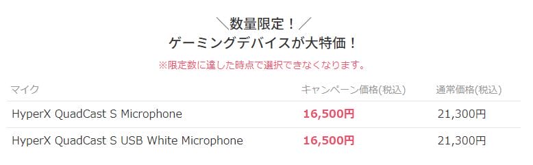▼ゲーミングデバイスを数量限定の特価で購入できるキャンペーンも実施。