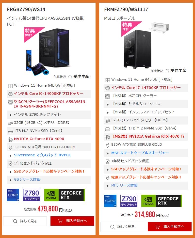 ▼最新の第14世代Core CPUを搭載したハイエンドモデルが登場!