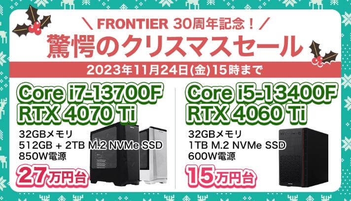 ハイエンドゲーミングPCが大特価!フロンティア『30周年記念SALE 第2弾』開催