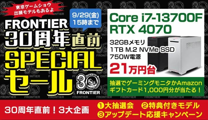 ハイエンドゲーミングPCが大特価!フロンティア『パソコン秋穫祭』セール開催