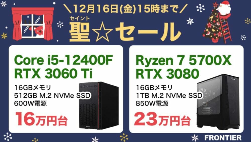 今回実施される『FRONTIER 聖セイント☆セール』では、ハイエンド級からミドル級まで、非常に幅広い価格帯のゲーミングPCがセール対象となっています。