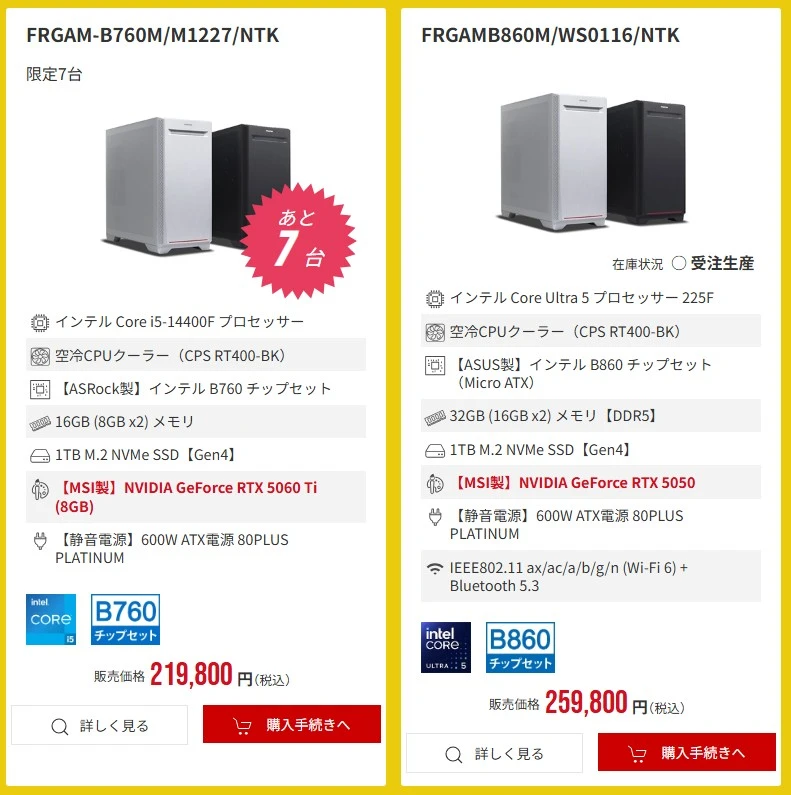 そのほか『RTX5060』などを搭載したお得なミドルレンジモデルや、ゲーミングセットさらにお得な価格で販売されています。
