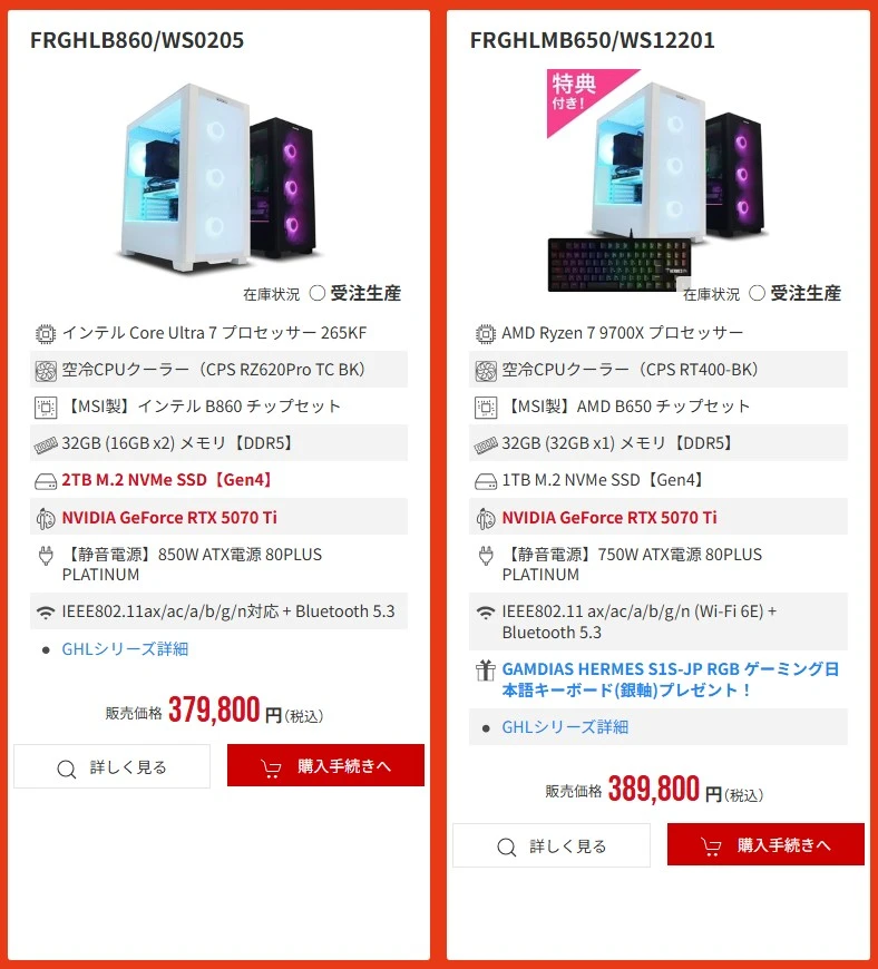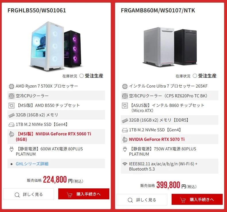 ▼『RTX5070Ti』搭載のミドルハイクラスも非常にお得な価格に。