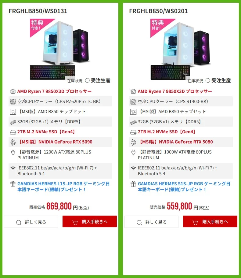 ▼ハイエンドグラボ『RTX5090』『RTX5080』を搭載したウルトラハイエンドモデルが特価に!
