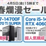 同サイトにおいて、RTX3000台およびRTX4000台など、人気の高いグラフィックボードを搭載したハイエンドゲーミングPCを、非常にお得な価格で購入出来るセール『新生活応援SALE』が開催されます。