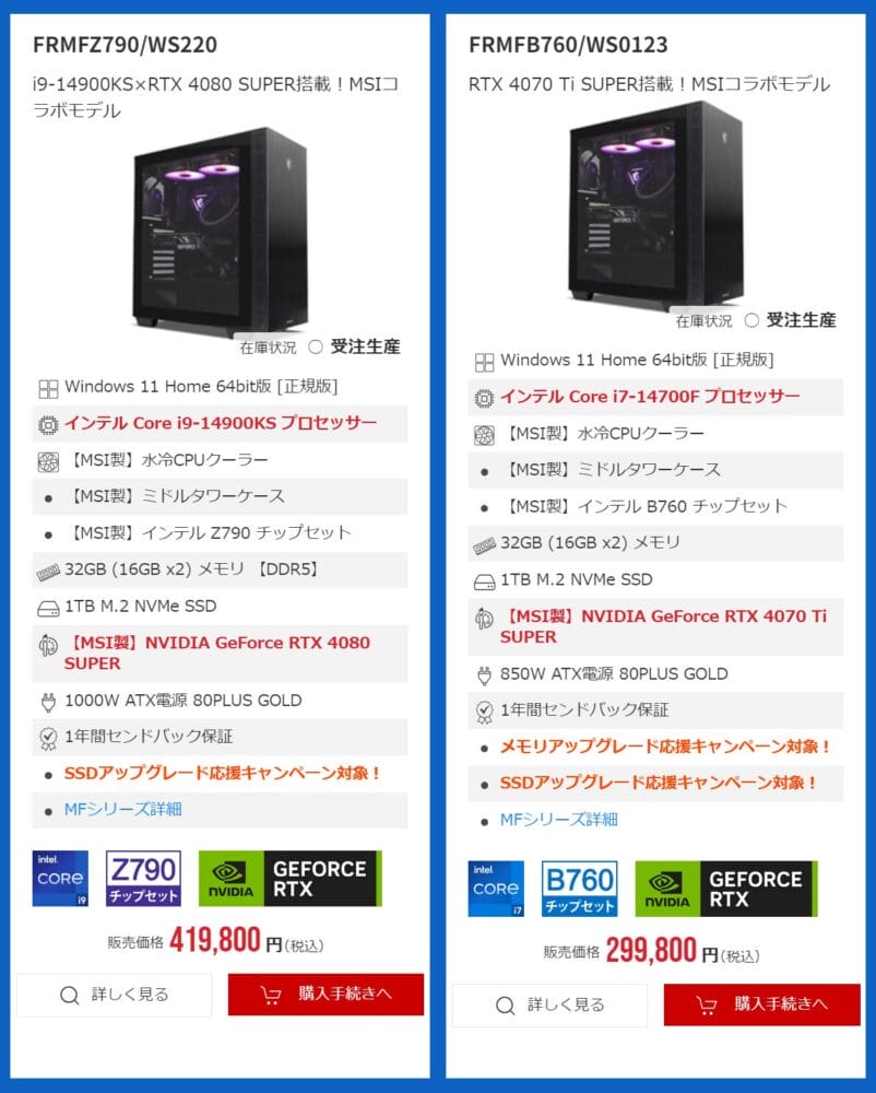同じく最新グラボである『GeForce RTX 4070Ti SUPER』や『GeForce RTX 4070 SUPER』搭載モデルもラインナップに含まれています。