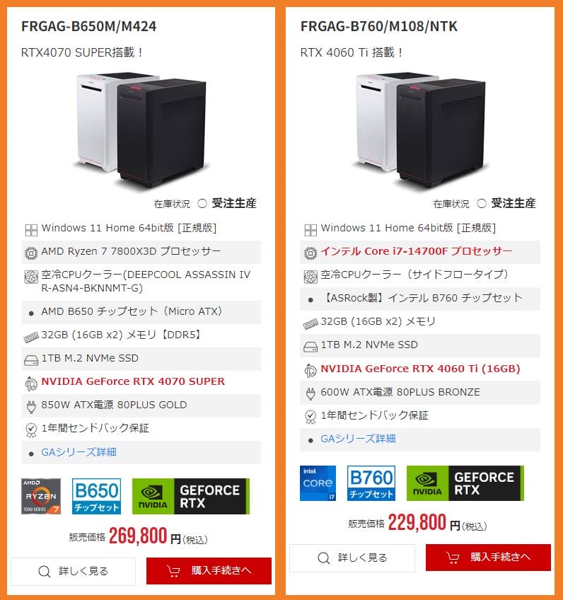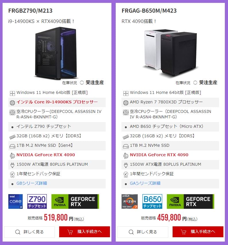 RTX4000、RTX3000シリーズを搭載したハイエンドゲーミングPCを、非常にお得な価格で購入できます。