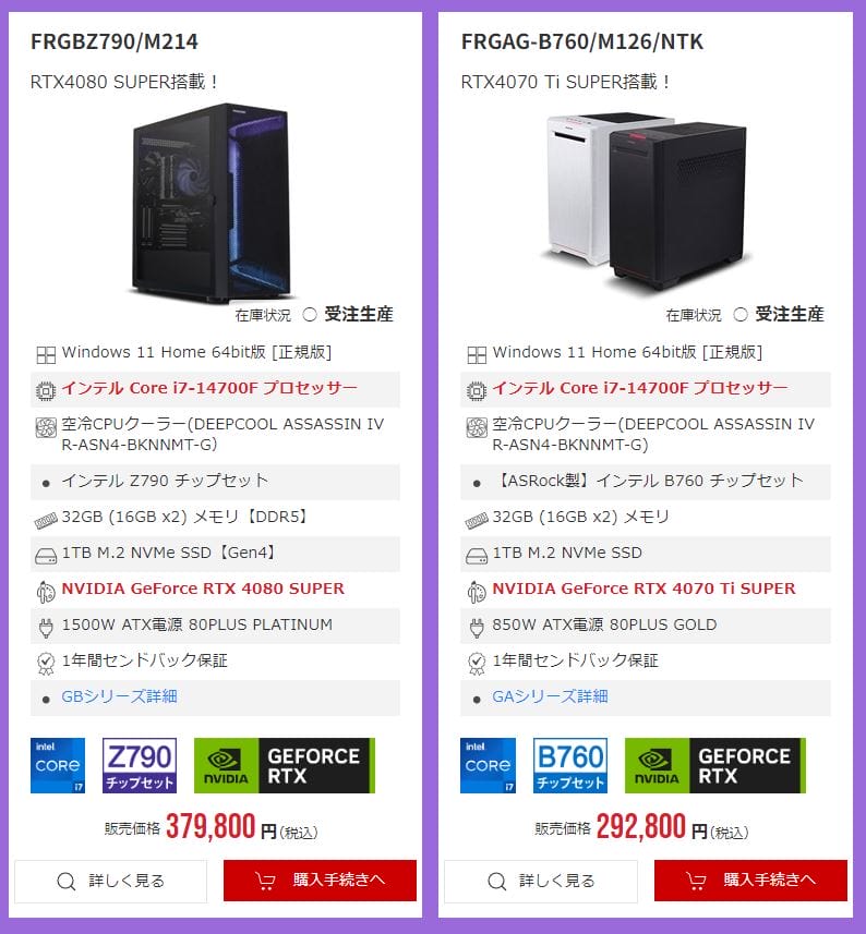 最新グラボ「RTX 4080 SUPER」「RTX 4070Ti SUPER」および「RTX 4070 SUPER」を搭載したモデルも登場!