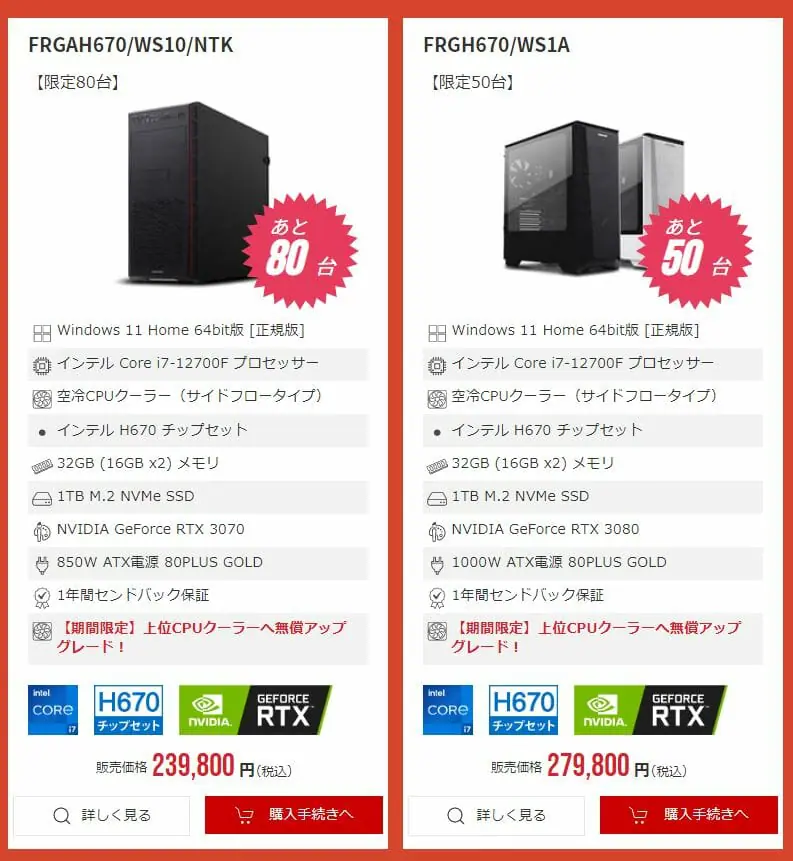 オススメ①:FRGH670/WS80TI ※上位CPUクーラーへ無償アップグレード!