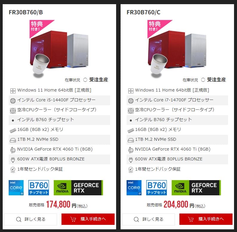 RTX4000、RTX3000シリーズを搭載したハイエンドゲーミングPCを、非常にお得な価格で購入できます。