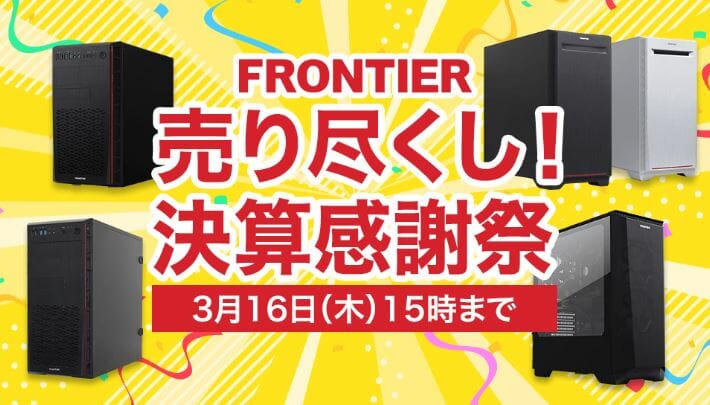 今回実施される『FRONTIER 売り尽くし!決算感謝祭』では、ハイエンド級からミドル級まで、非常に幅広い価格帯のゲーミングPCがセール対象となっています。