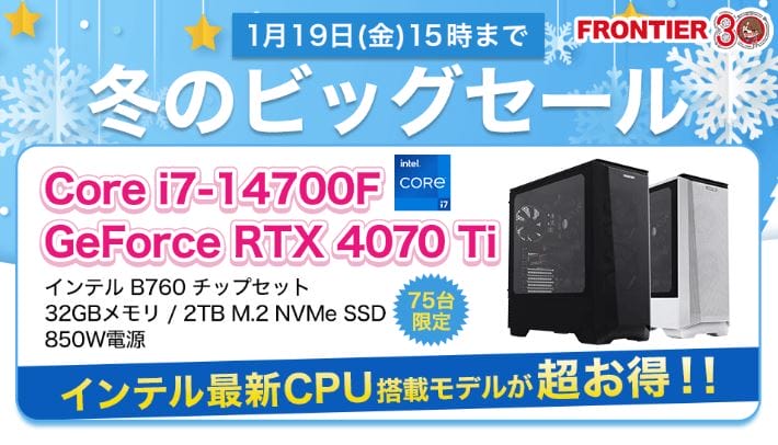 ハイエンドゲーミングPCが大特価!フロンティア『30周年記念SALE』開催