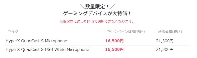 ▼ゲーミングデバイスを数量限定の特価で購入できるキャンペーンも実施。
