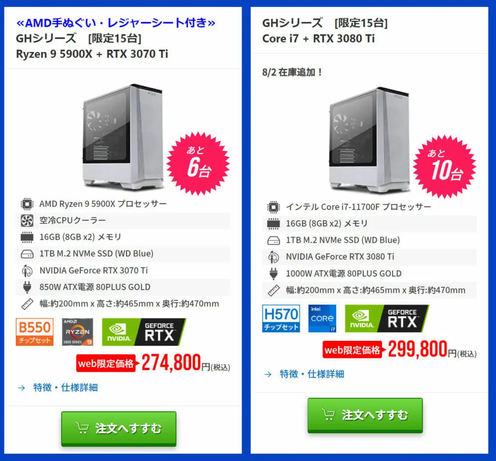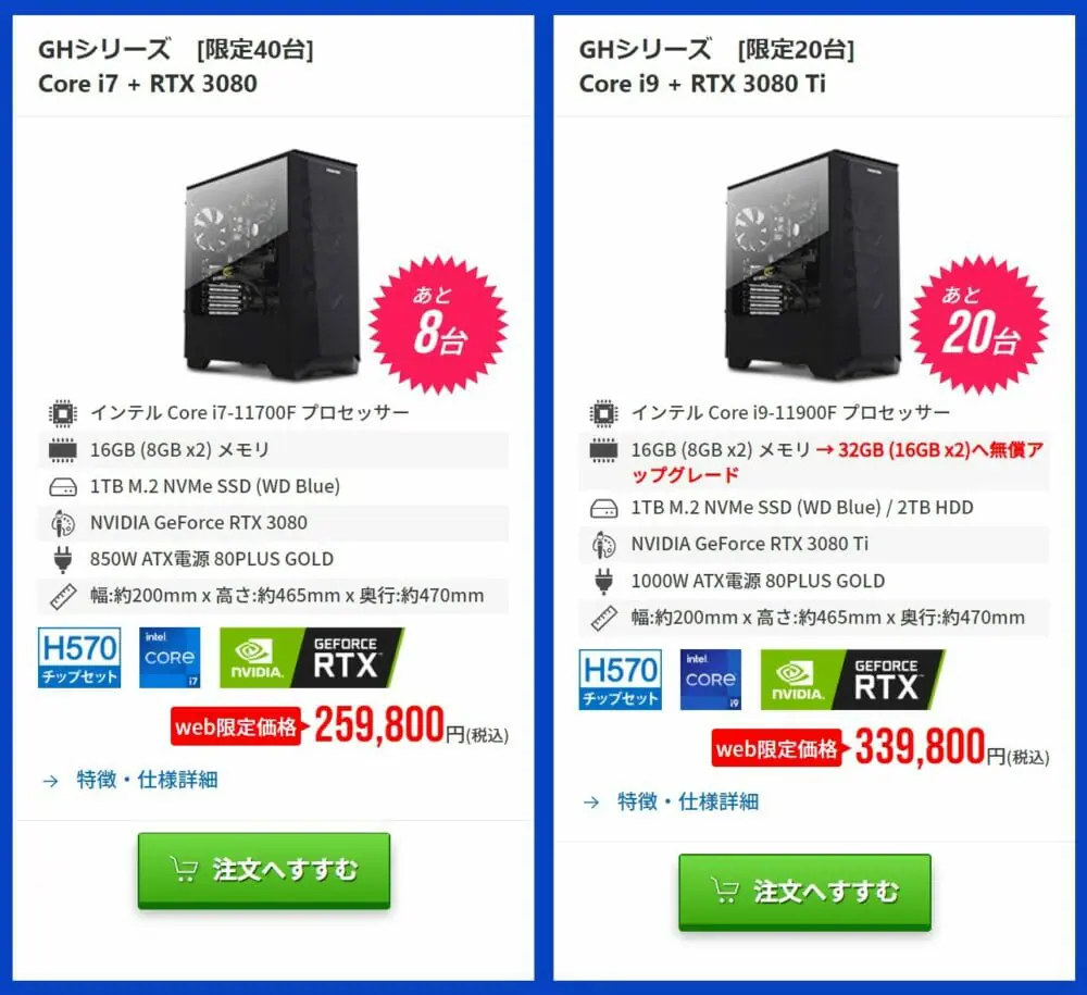 オススメ①:GHシリーズ [限定40台] Core i9 + RTX 3080 Ti