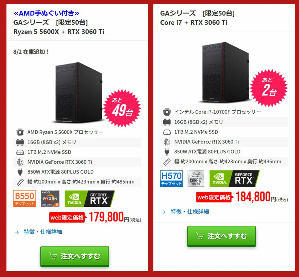 オススメ②:GHシリーズ [限定40台] Core i7 + RTX 3080