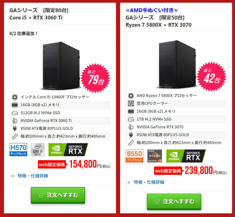 ただし上述した通り、いずれの製品も数量限定であり、用意されている数量はあまり多くありません。