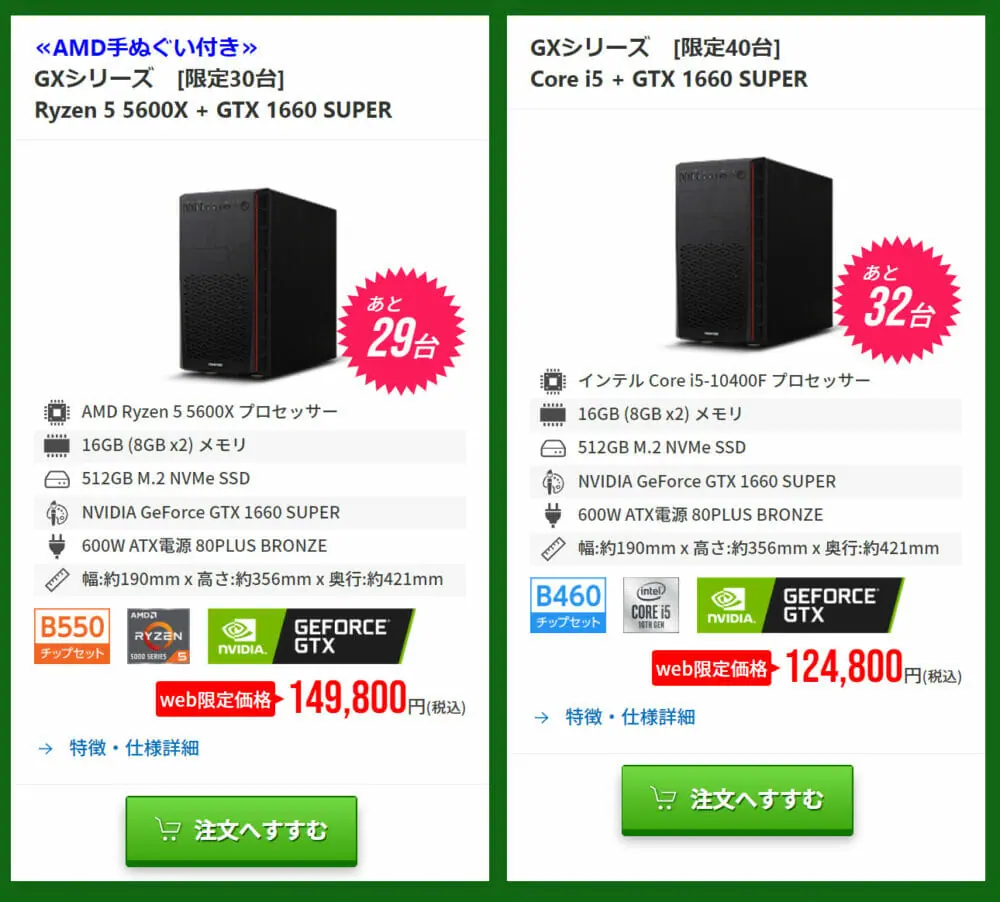 また、『GTX1660 SUPER』を搭載したミドル級のリーズナブルなモデルに関しても、さらにお得な価格で購入することが出来ます。