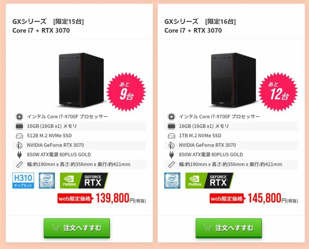 ▼ハイエンドグラボであるRTX3070を搭載したモデルが、15万円ほどで購入可能!