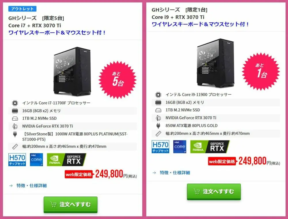 オススメ②:GHシリーズ [限定5台] Core i7 + RTX 3070 Ti