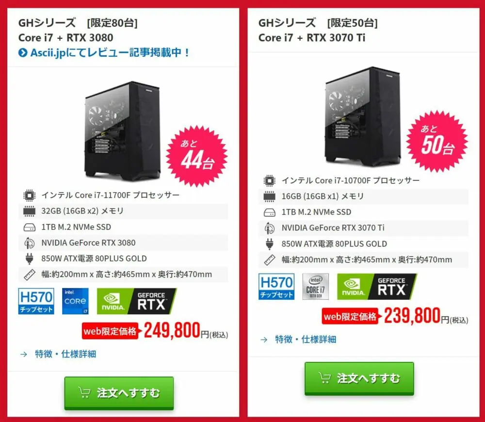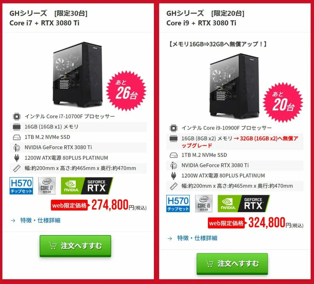 オススメ①:GHシリーズ [限定20台] Core i9 + RTX 3080 Ti