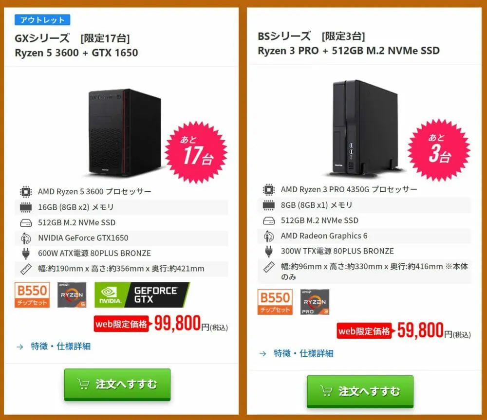 ▼ハイエンドPCだけでなく、リーズナブルなロー~ミドルクラスのデスクトップPCもお得に購入することが出来ます。