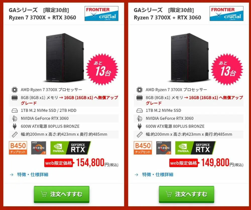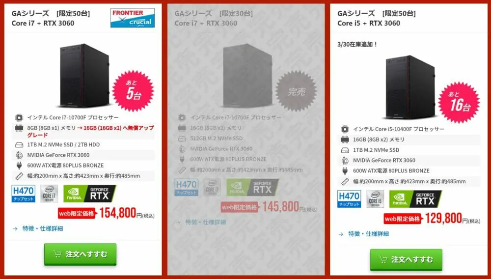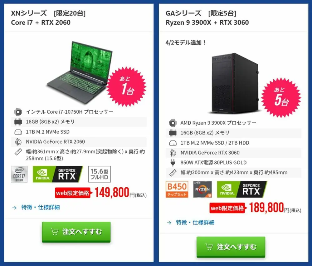 ▼ハイエンドグラボであるRTX3060を搭載したモデルが、15万円ほどで購入可能!