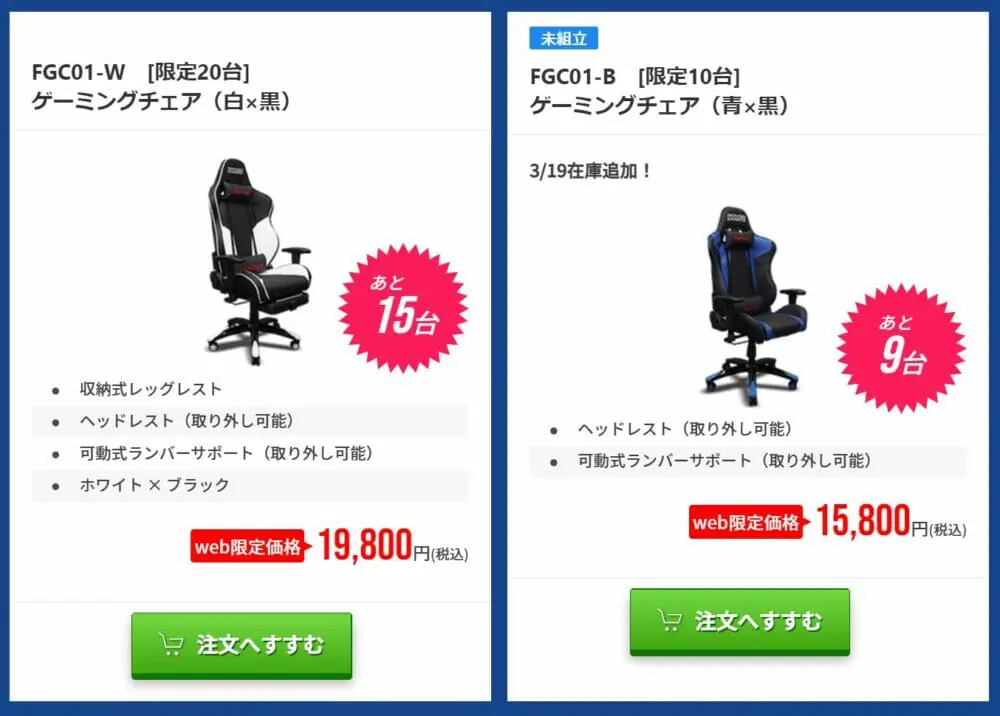また、快適にゲームやクリエイティブな作業を行うことのできるゲーミングチェアもお得に購入可能です。