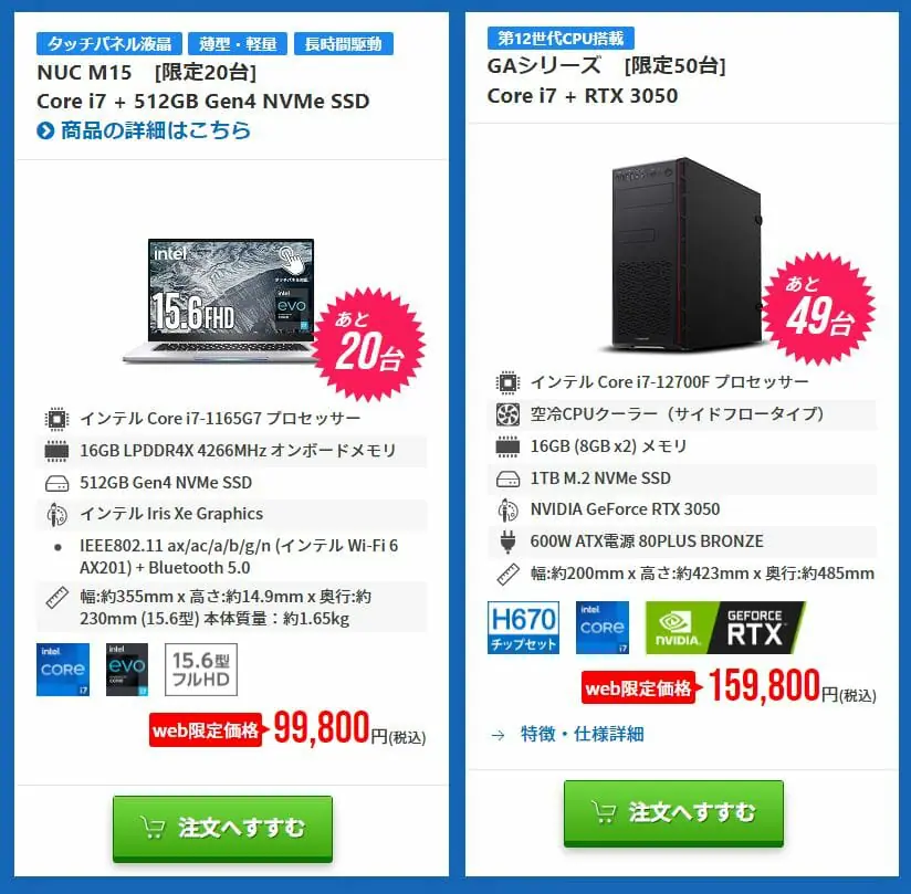 ハイエンドゲーミングPCを始めとする幅広いラインナップの製品をお得に購入することが出来ます。第12世代Core CPUに興味のある方も必見です。