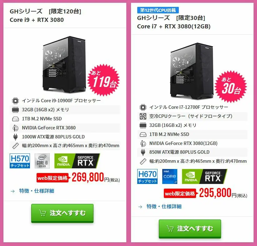 オススメ②:GHシリーズ [限定120台] Core i9 + RTX 3080