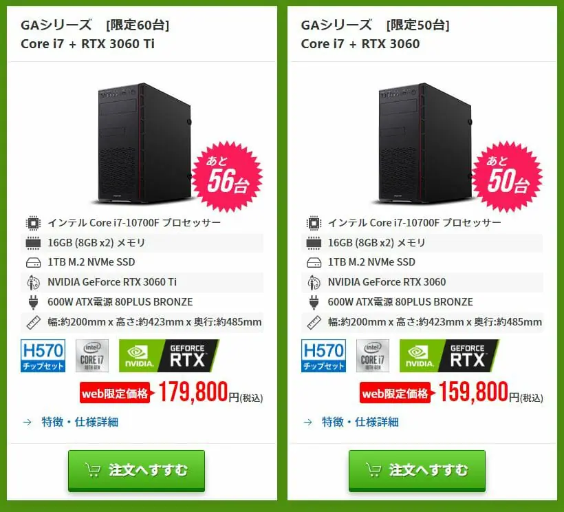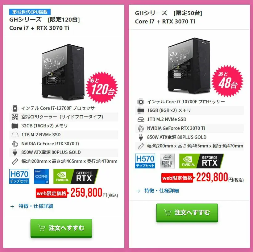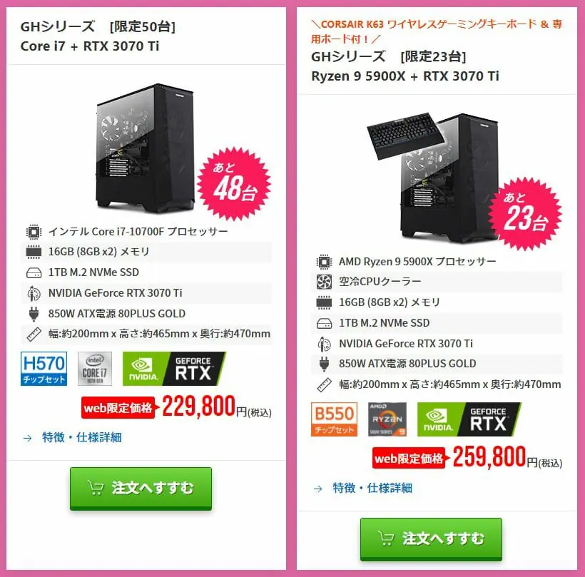 オススメ①:GHシリーズ [限定120台] Core i7 + RTX 3070 Ti
