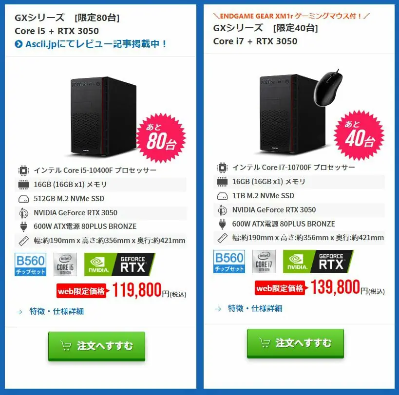オススメ③:GAシリーズ [限定50台] Core i5 + RTX 3050