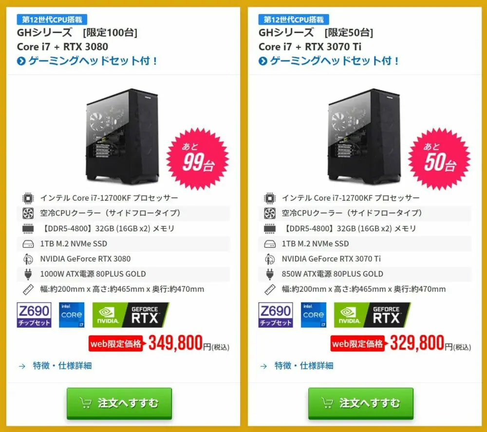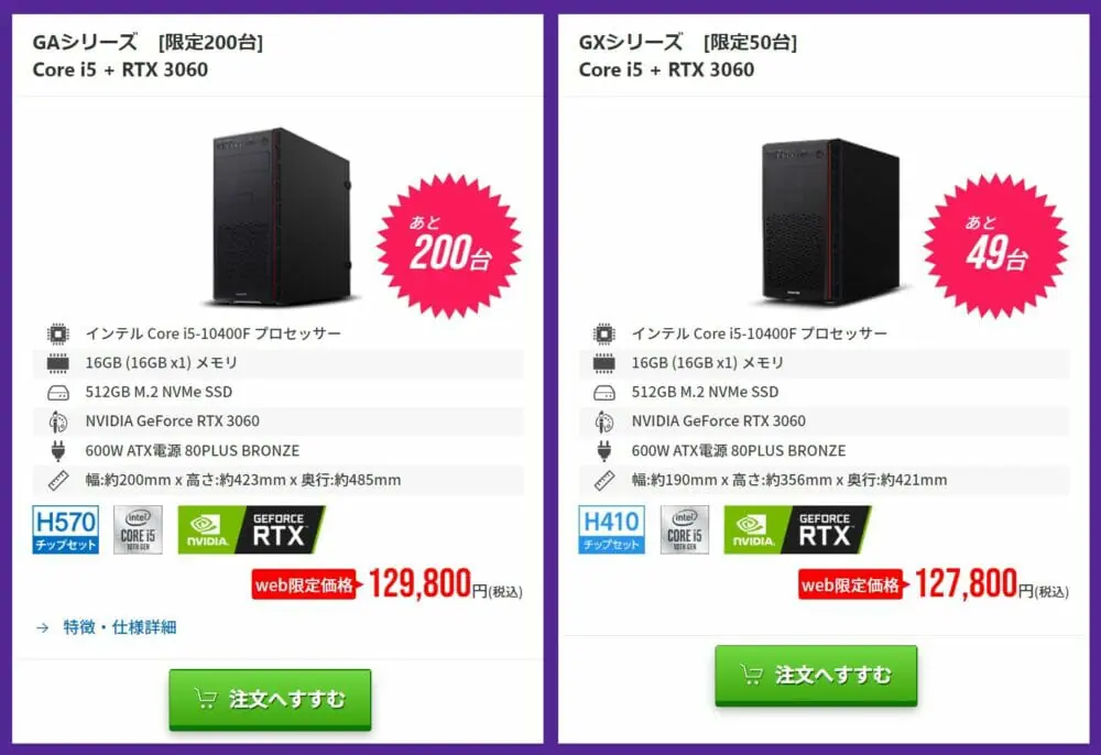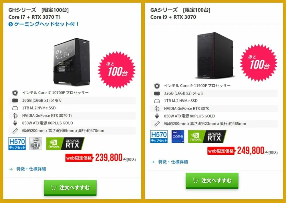 オススメ③:GHシリーズ [限定100台] Core i7 + RTX 3070 Ti