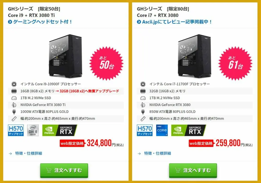 オススメ②:GHシリーズ [限定50台] Core i9 + RTX 3080 Ti