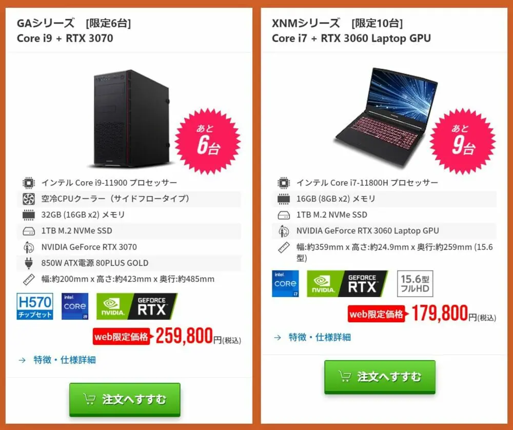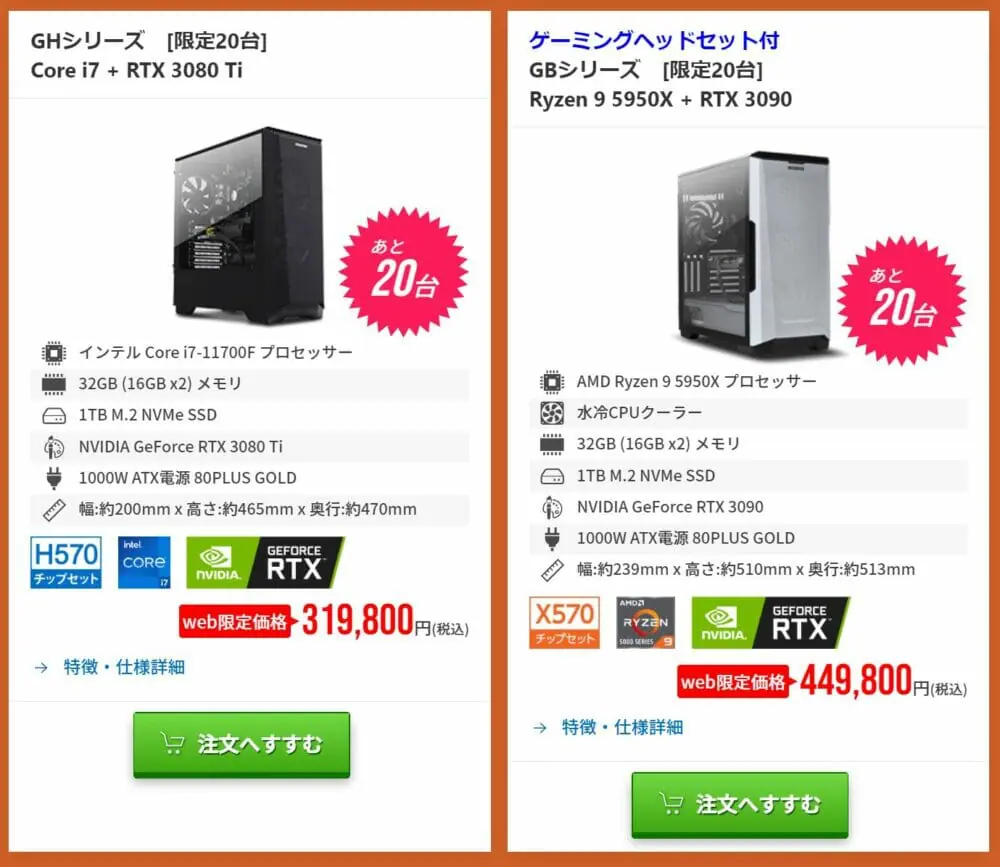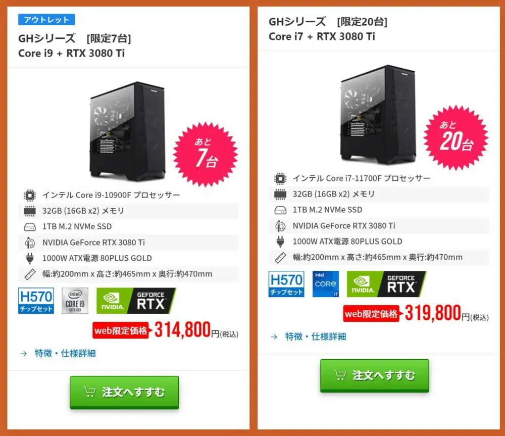 オススメ①:GHシリーズ [限定7台] Core i9 + RTX 3080 Ti