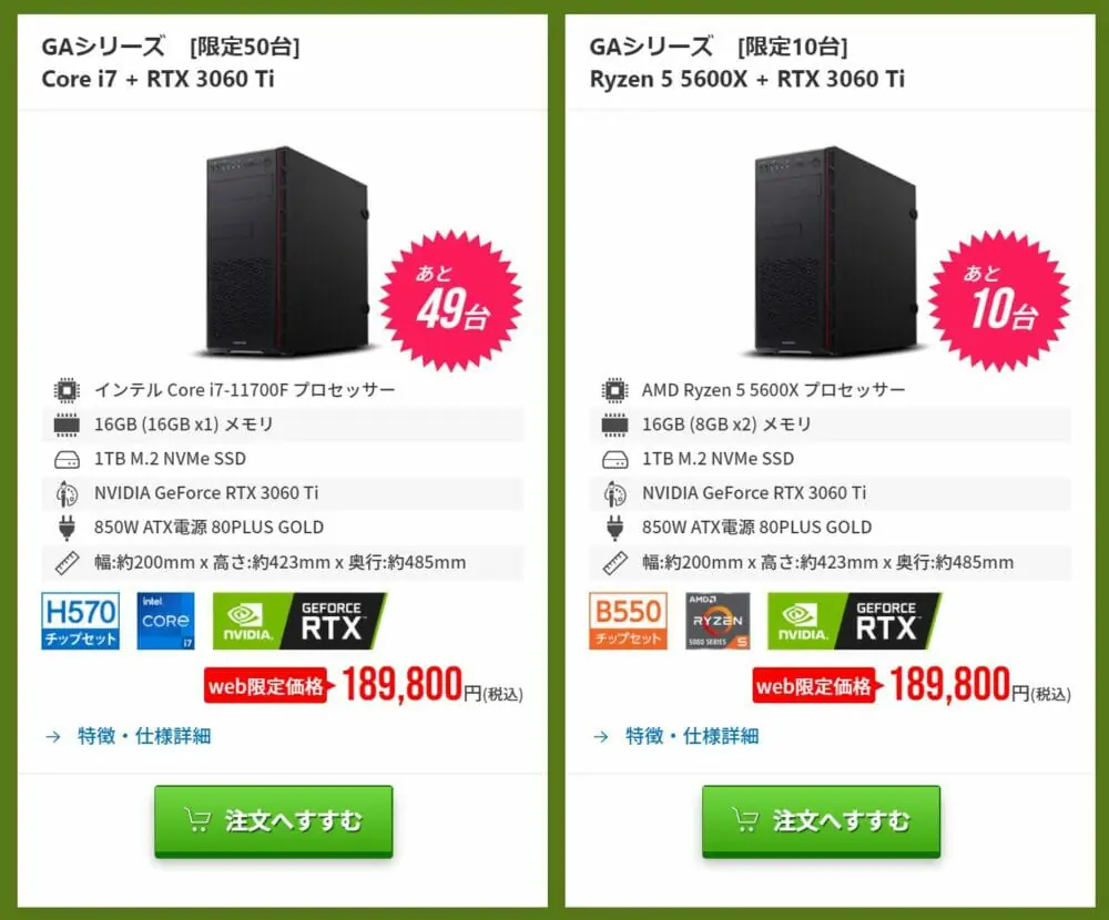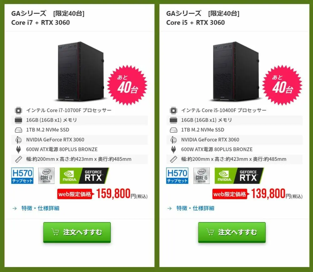 オススメ③:GAシリーズ [限定40台] Core i5 + RTX 3060