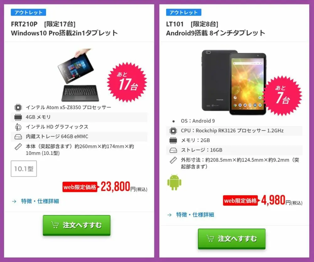 ただし上述した通り、いずれの製品も数量限定であり、用意されている数量はあまり多くありません。